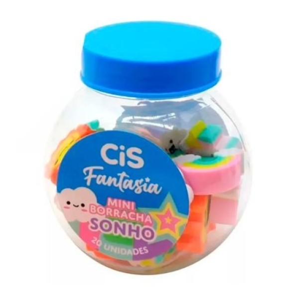 Detalhes: Pote com 20 mini borrachas / Tamanho aproximado das mini borrachas: 1,7cm x 1,5cm / Produto Certificado INMETRO (Artigo Escolar/Segurança) – Registro 003521/2013